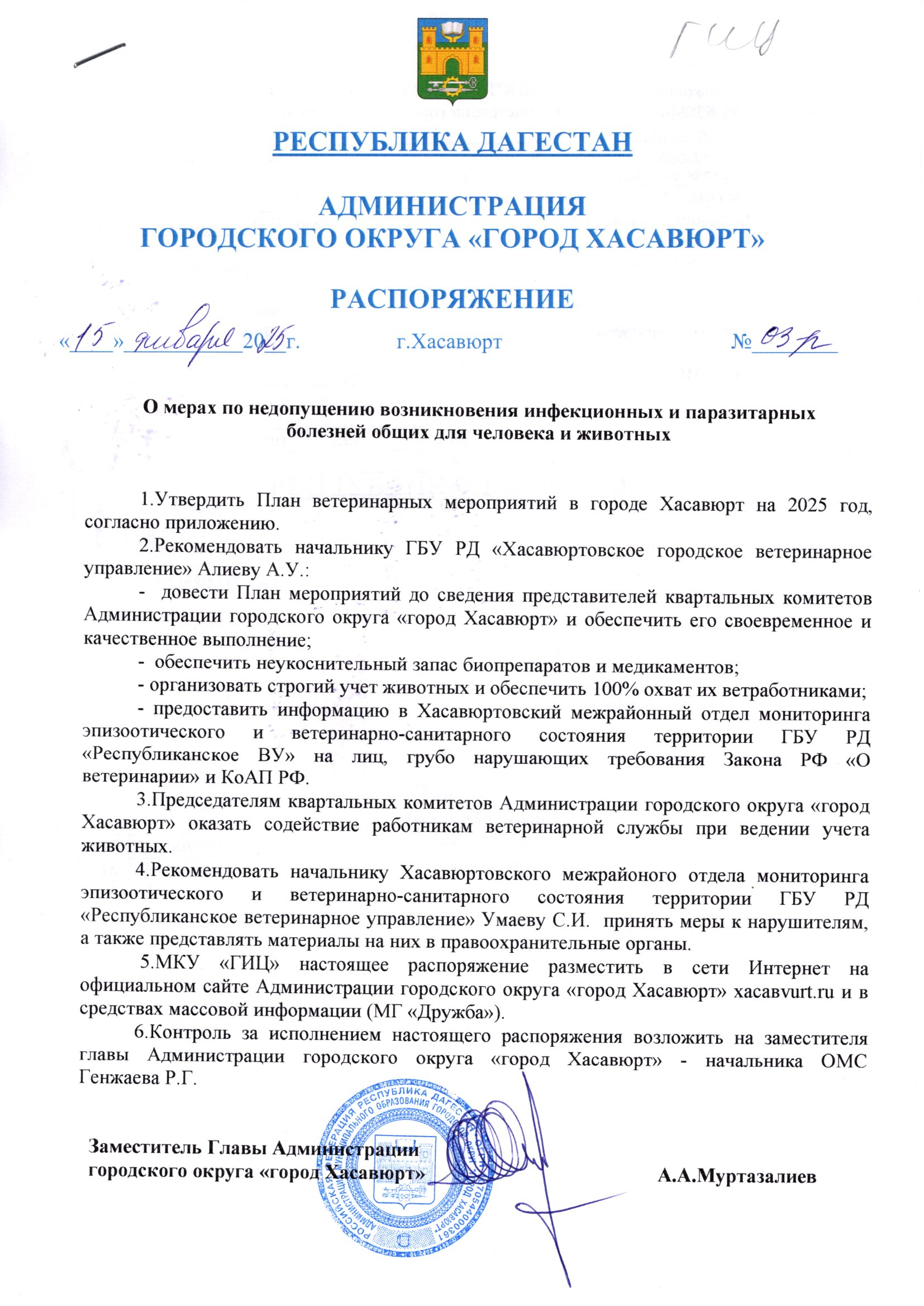 Распоряжение от 15 января 2025 г. № 03-р О мерах по недопущению возникновения инфекционных и паразитарных болезней общих для человека и животных