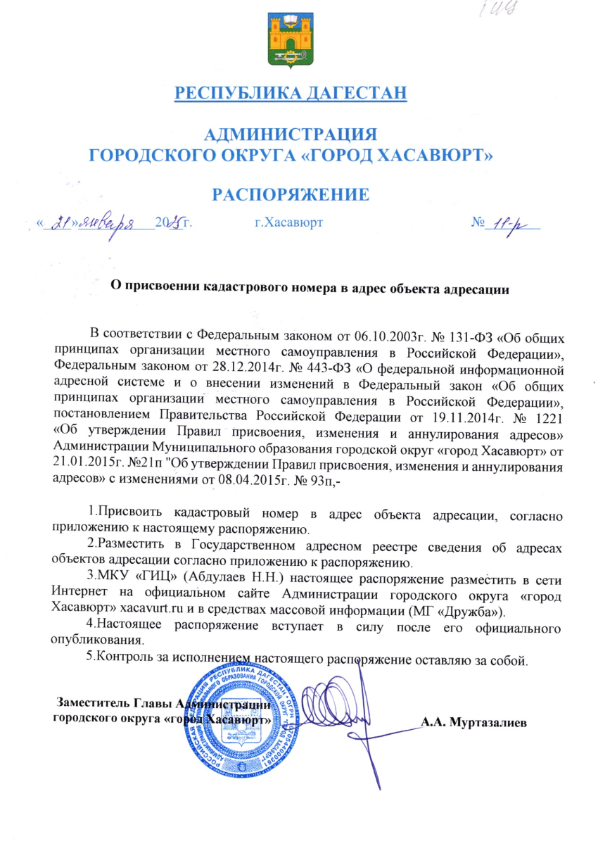 Распоряжение от 21 января 2025 г. № 12-р О присвоении адреса объекту адресации
