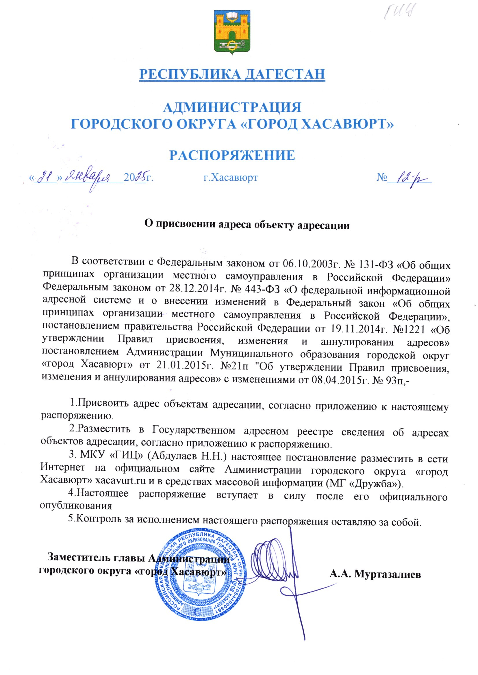 Распоряжение от 21 января 2025 г. № 12-р О присвоении адреса объекту адресации
