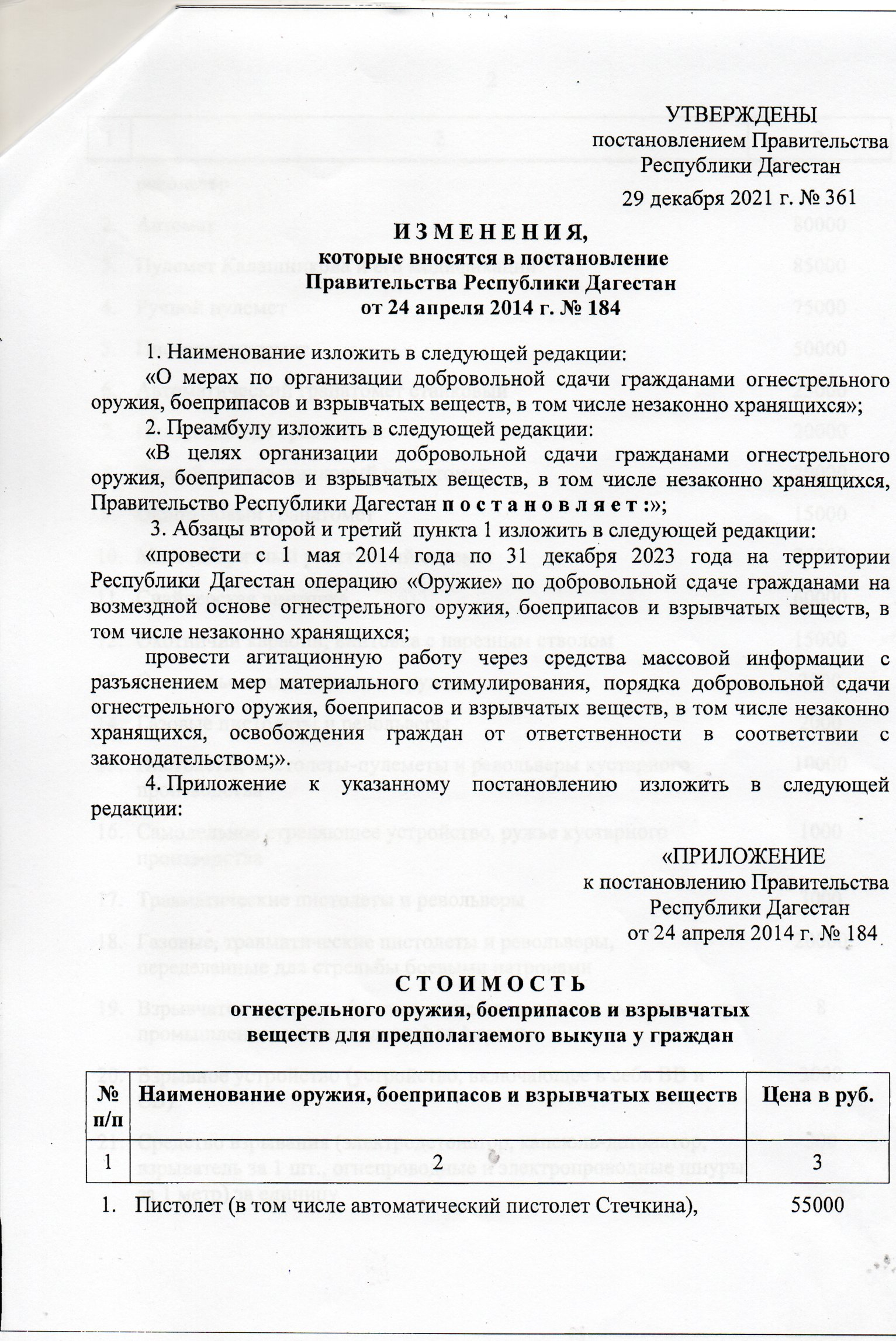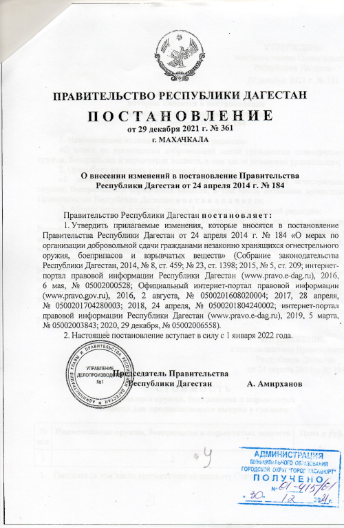 Постановление Правительства РД №361 от 29 декабря 2021 г. О внесении изменений в постановление Правительства РД от 24 апреля 2014 г. №184