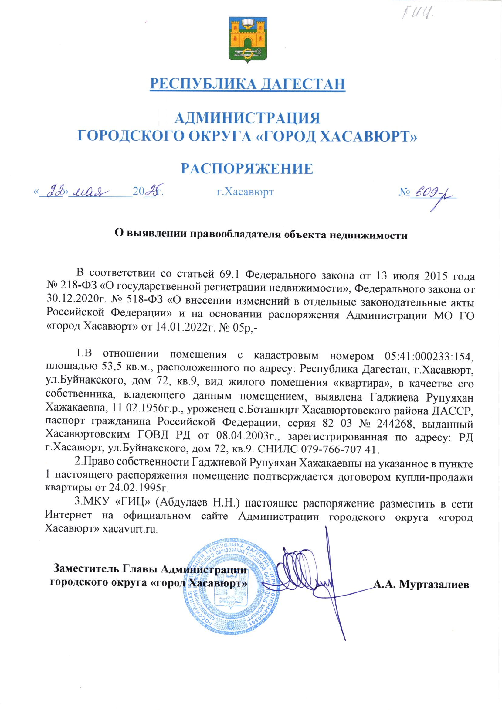 Распоряжение от 22 мая 2025 г. № 609-р О выявлении правообладателя объекта недвижимости