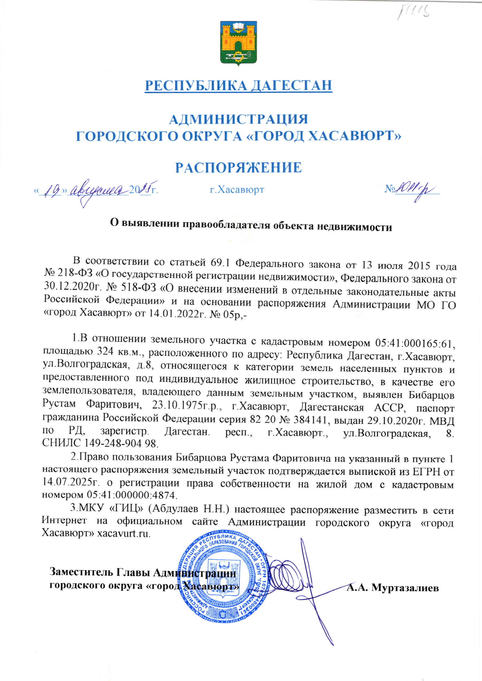 Распоряжение от 19 августа 2025 г. № 1011-р О выявлении правообладателя объекта недвижимости