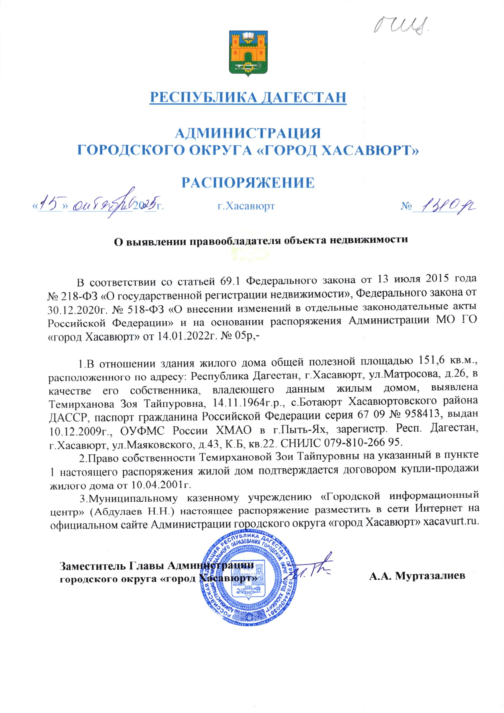 Распоряжение от 15 октября 2025 г. № 1311-р о выявлении правообладателя объекта недвижимости
