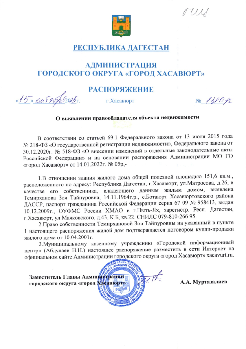 Распоряжение от 3 апреля 2025 г. № 397-р О выявлении правообладателя объекта недвижимости