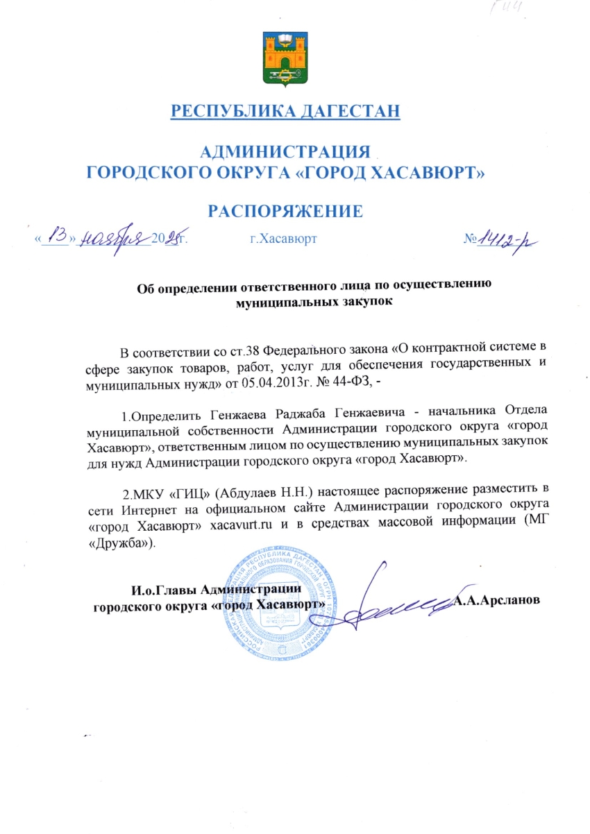 Распоряжение от 13 ноября 2025 г. № 1412-р Об определении ответственного лица по осуществлению муниципальных закупок