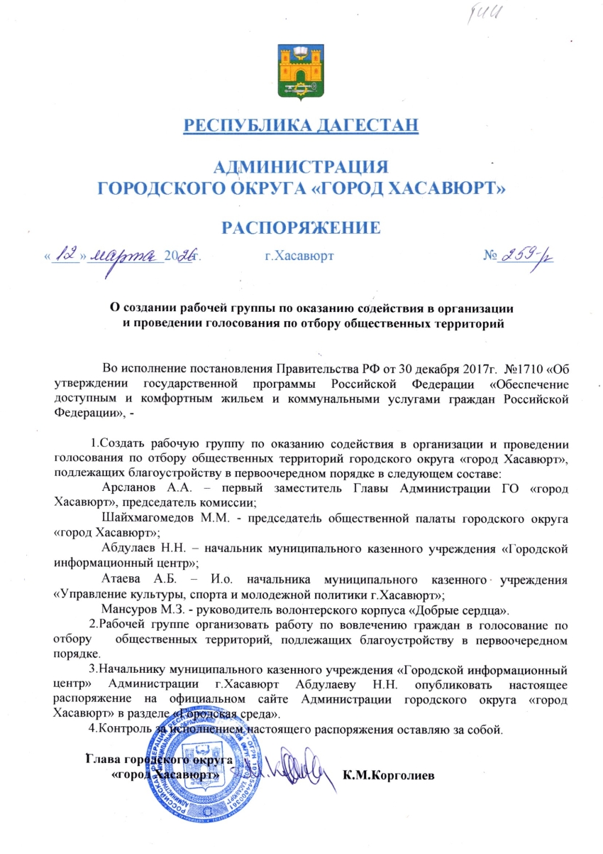 Распоряжение от 12 марта 2026 г. № 259-р О создании рабочей группы по оказанию содействия в организации и проведении голосования по отбору общественных территорий