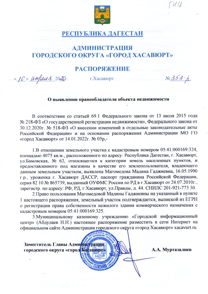 Распоряжение от 10 апреля 2026 г. № 353-р О выявлении правообладателя объекта недвижимости