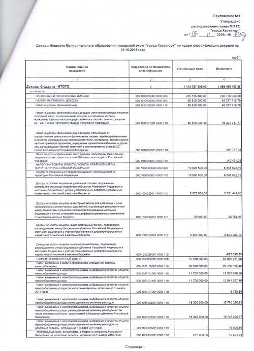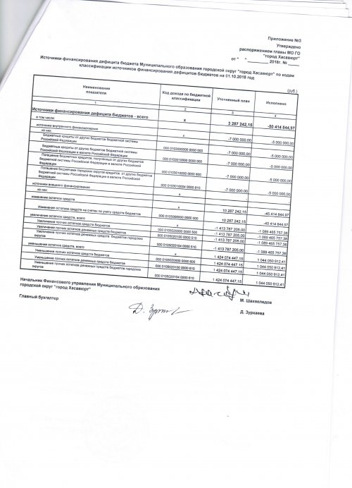 Распоряжение об утверждении отчета об исполнении бюджета Муниципального образования городской округ «город Хасавюрт» за 1 полугодие 2018 года
