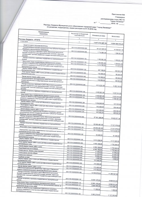 Распоряжение Об утверждении отчета об исполнении бюджета Муниципального образования городской округ «город Хасавюрт» за 9 месяцев 2017 года