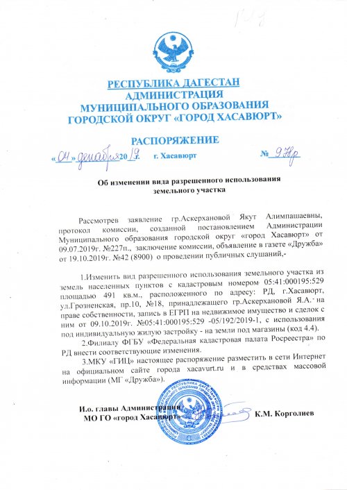 Распоряжение об изменении вида разрешенного использования земельного участка