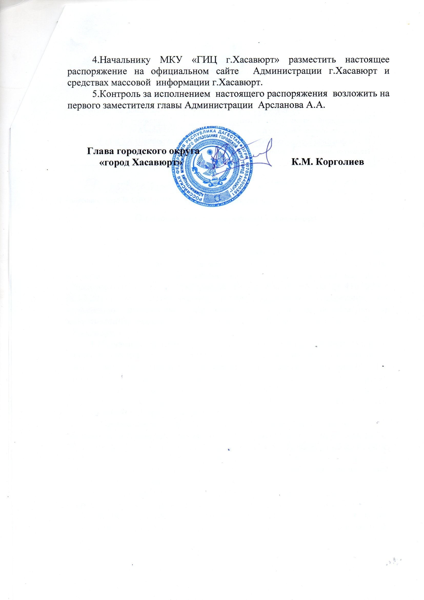 Распоряжение №20р от 19 января 2021 г. О водоснабжении населения г. Хасавюрт