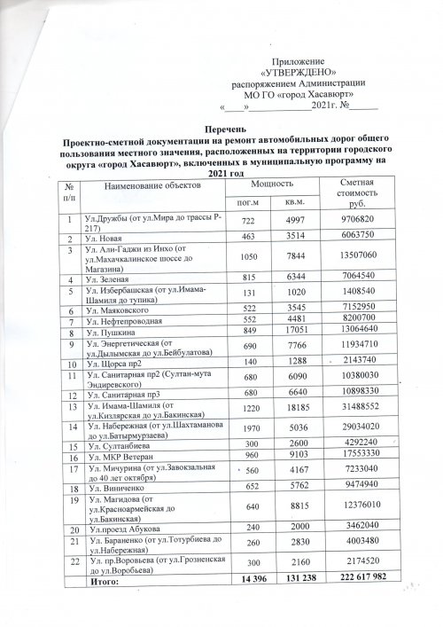 Распоряжение №20р от 19 января 2021 г. О водоснабжении населения г. Хасавюрт