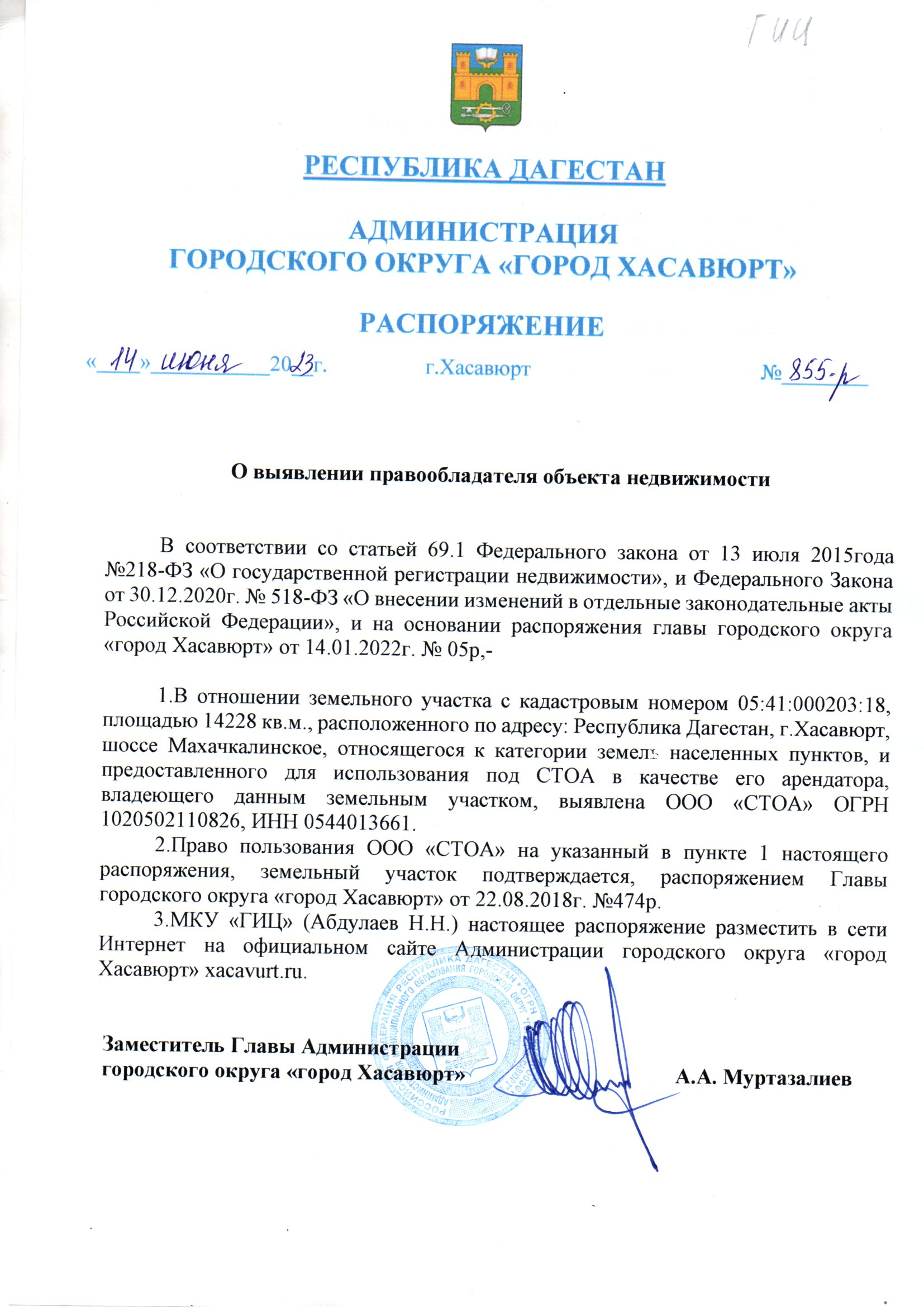 Распоряжение № 855-р от 14 июня 2023 г. О выявлении правообладателя объекта недвижимости