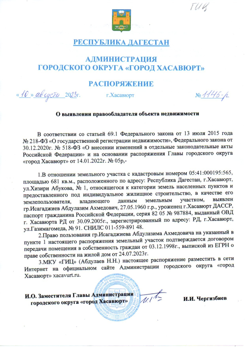 Распоряжение № 1145-р от 10 августа 2023 г. О выявлении правообладателя объекта недвижимости