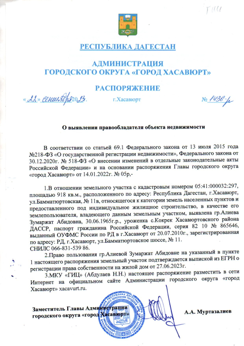 Распоряжение № 1436-р от 22 сентября 2023 г. О выявлении правообладателя объекта недвижимости