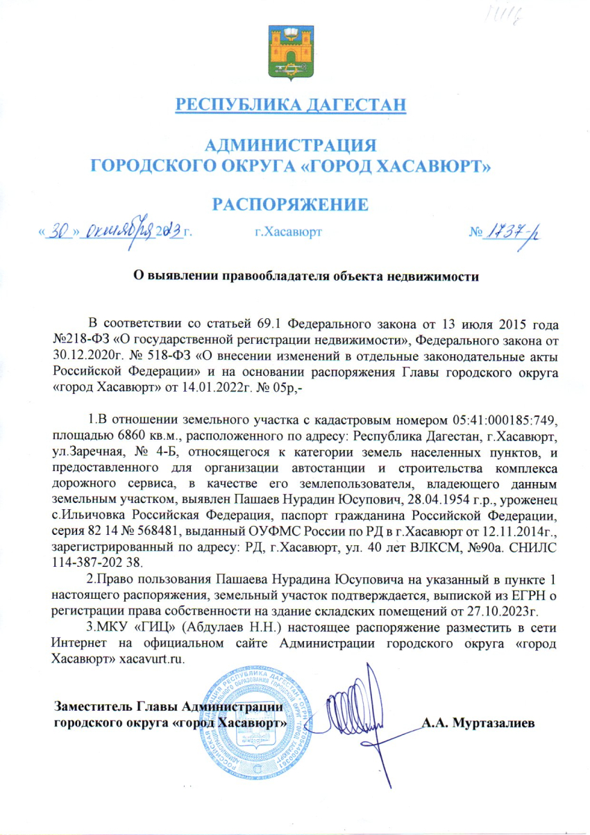 Распоряжение от 30 октября 2023 г. № 1737-р О выявлении правообладателя объекта недвижимости