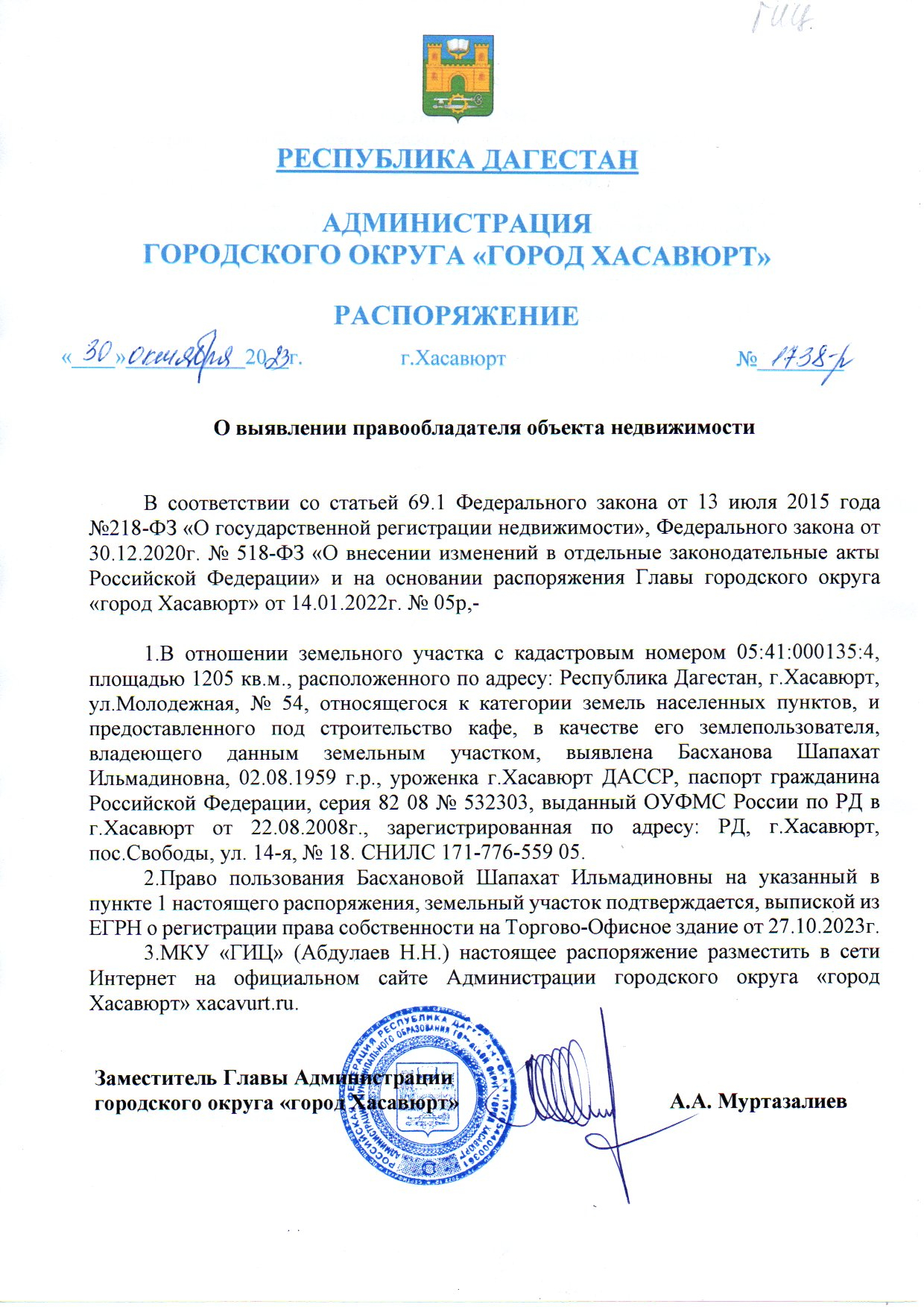 Распоряжение от 30 октября 2023 г. № 1738-р О выявлении правообладателя объекта недвижимости