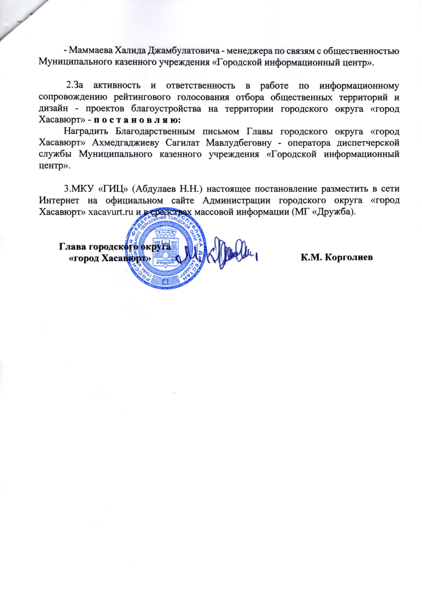 Постановление от 27 июня 2024 г. № 46пг О награждении Благодарственным письмом Главы города Хасавюрт