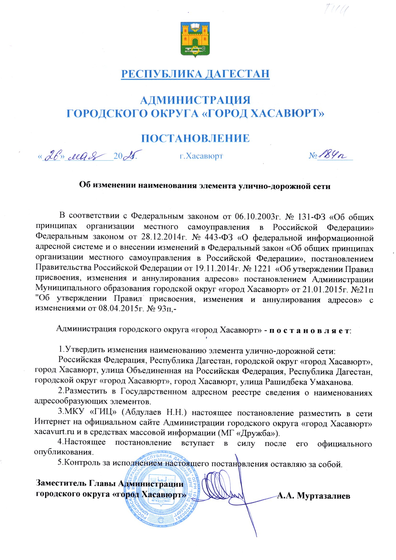Постановление от 26 мая 2025 г. № 184п Об изменении наименования элемента улично-дорожной сети