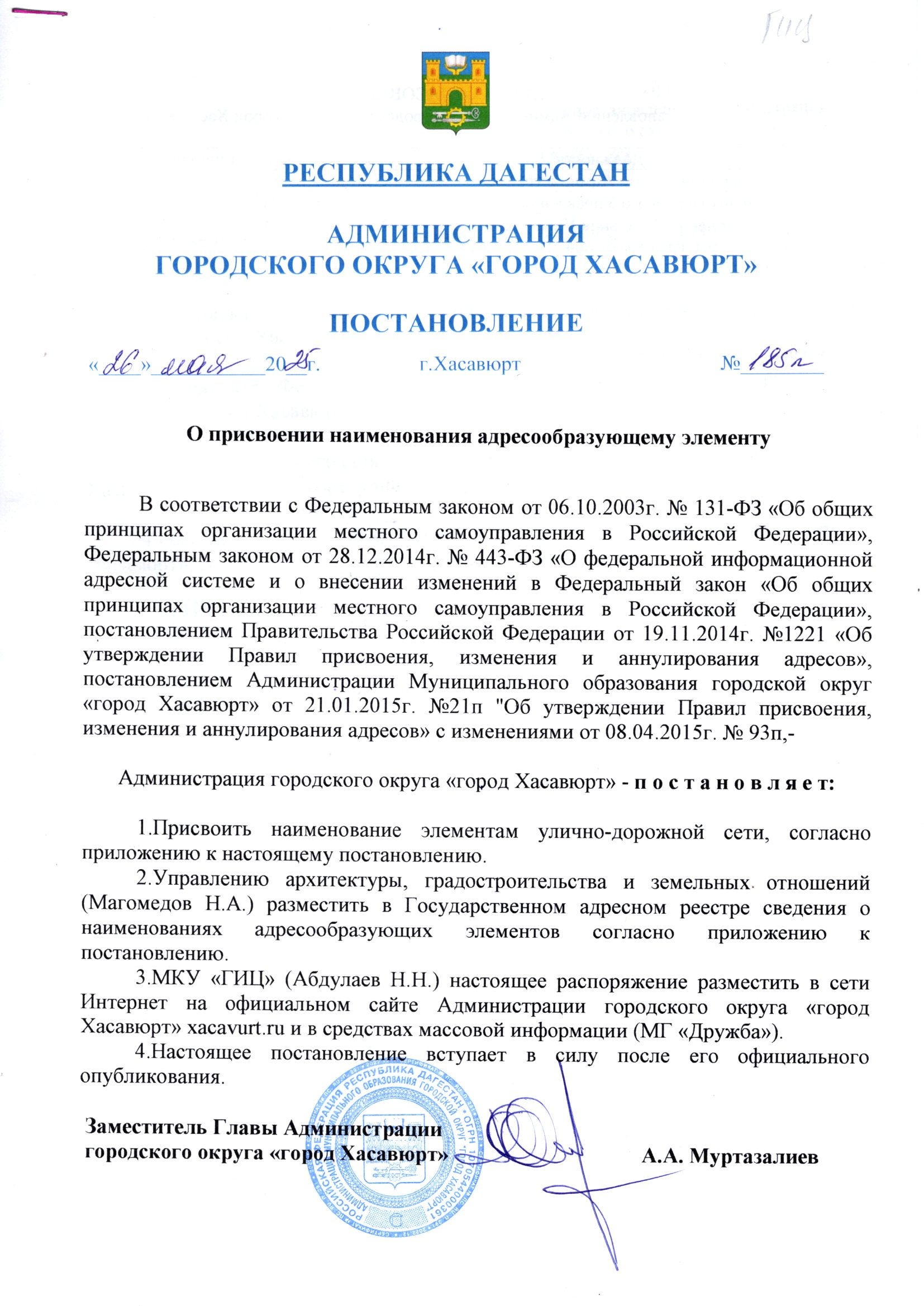 Постановление от 26 мая 2025 г. № 185п О присвоении наименования адресообразующему элементу
