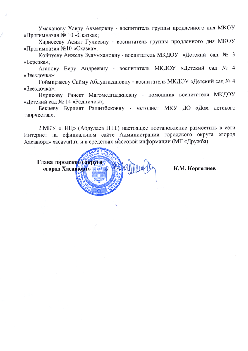 Постановление от 29 августа 2024 г. № 54 пг О награждении Благодарственным письмом Главы города Хасавюрт