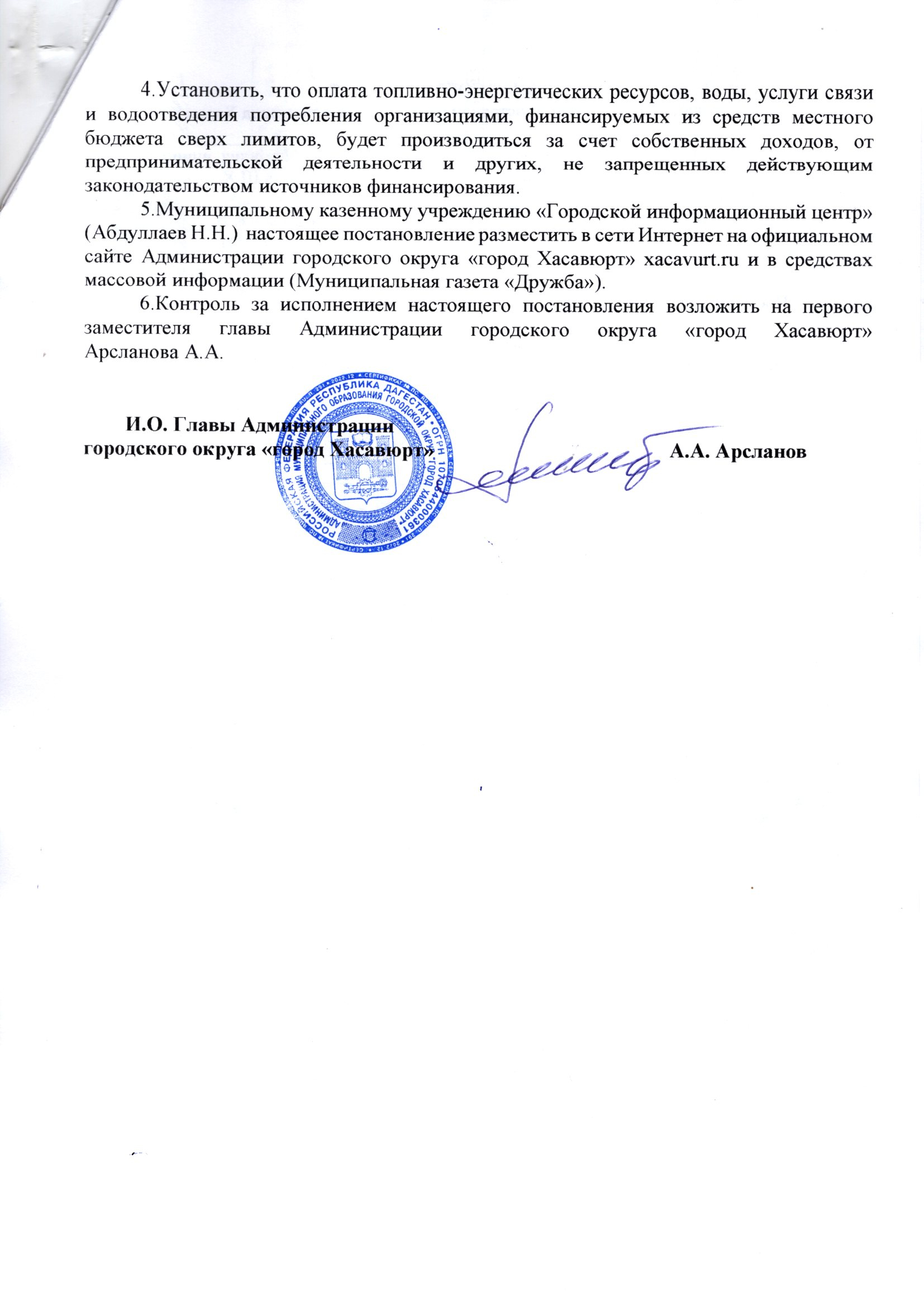 Постановление от 30 октября 2024 г. № 159п О лимитах потребления топливно-энергетических ресурсов, воды, услуг связи и водоотведения на 2025 год по бюджетным организациям г.Хасавюрт