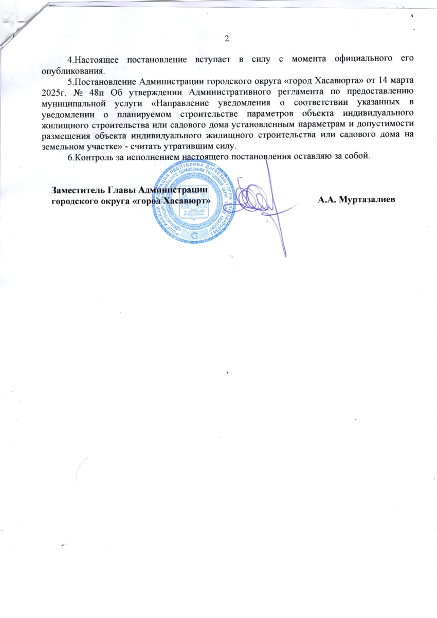 Постановление от 14 марта 2025 г. № 48п Об утверждении Административного регламента по предоставлению муниципальной услуги «Направление уведомления о соответствии указанных в уведомлении о планируемом строительстве»