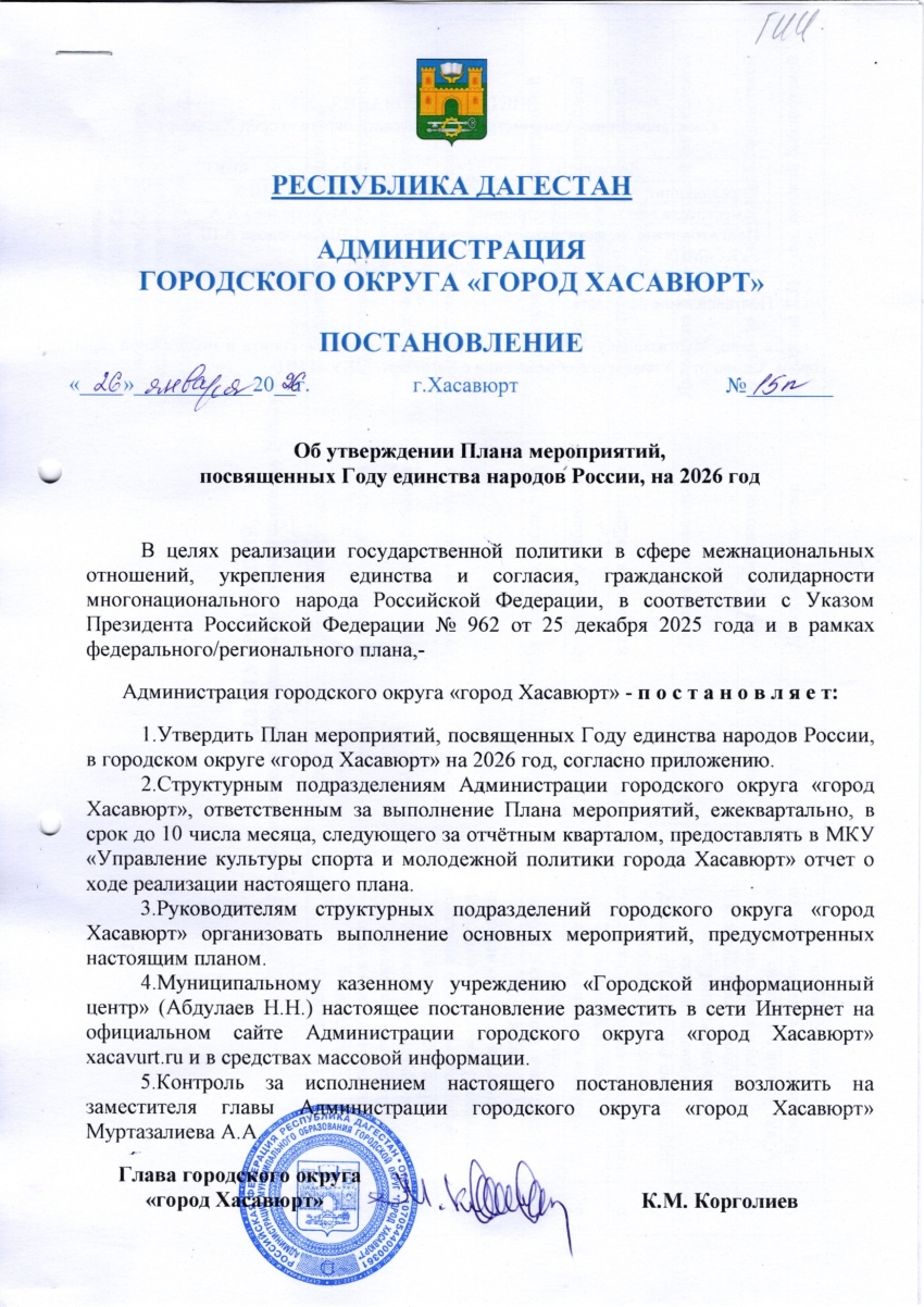 Постановление от 26 января 2026 г. № 15 п Об утверждении Плана мероприятий, посвященных Году единства народов России, на 2026 год