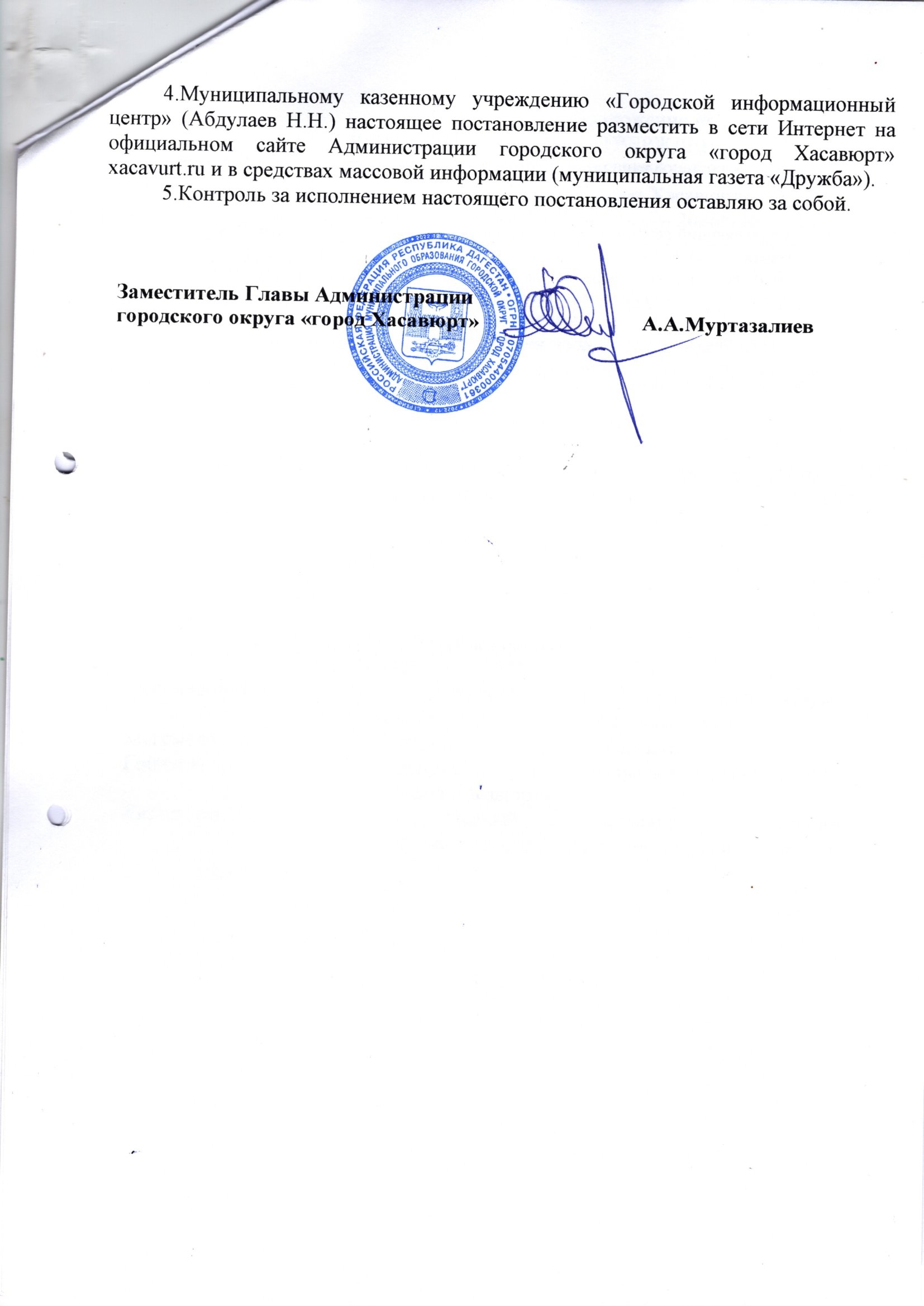 Постановление от 22 октября 2025 г. № 269 п О подготовке проекта о внесении изменений в правила землепользования и застройки городского округа «город Хасавюрт»