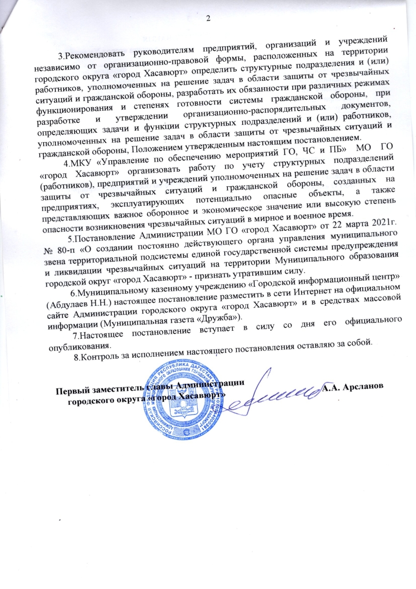 Постановление от 23 марта 2026 г. № 60 п Об утверждении Положения о муниципальном звене территориальной подсистемы единой государственной системы предупреждения и ликвидации чрезвычайных ситуаций на территории городского округа "город Хасавюрт"