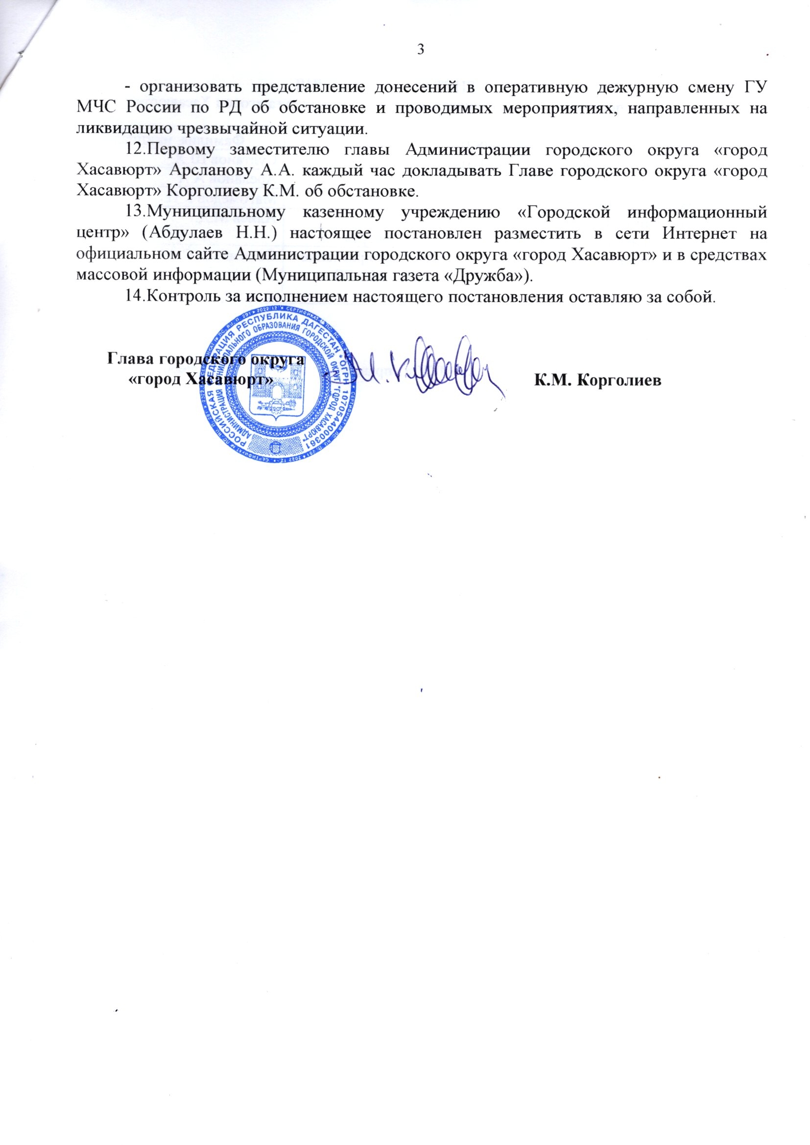 Постановление №72/01п о введении на территории МО ГО "город Хасавюрт" по вводной (№2) режима функционирования "Чрезвычайная ситуация"