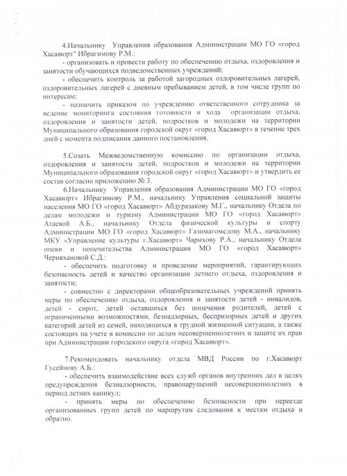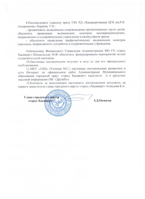 Постановление №67 от 5 марта 2019 года о мерах по организации отдыха