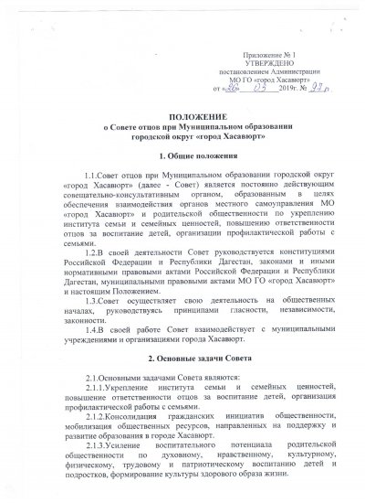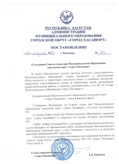Постановление о создании Совета отцов при Муниципальном образовании городской округ "город Хасавюрт"