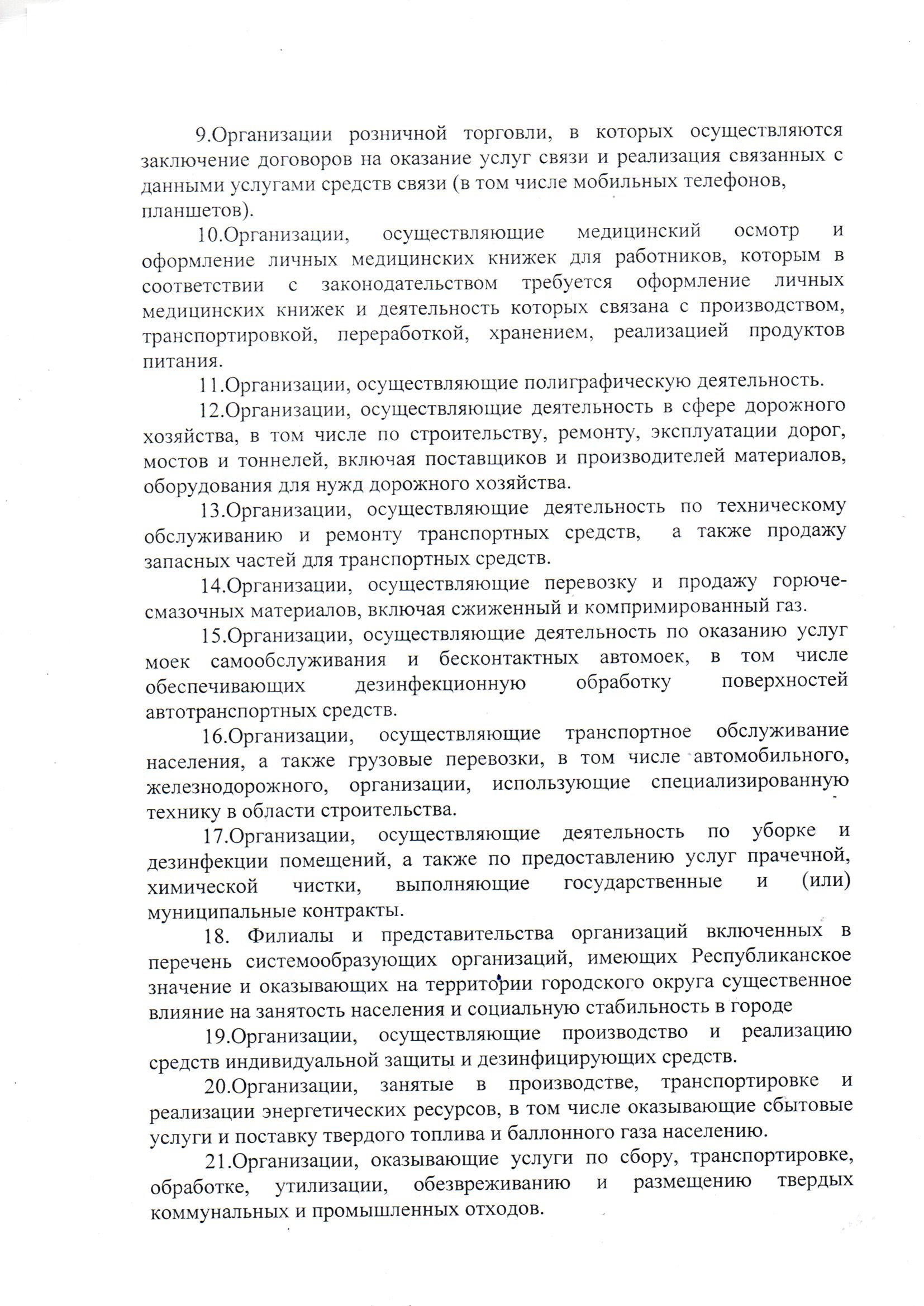 Комментарии: В данный перечень входят Организации и ИП, только выполняющие государственные и (или) муниципальные контракты. Частные прачечные и химчистки, не выполняющие такие закозы по контракту, не имеют право функционировать.