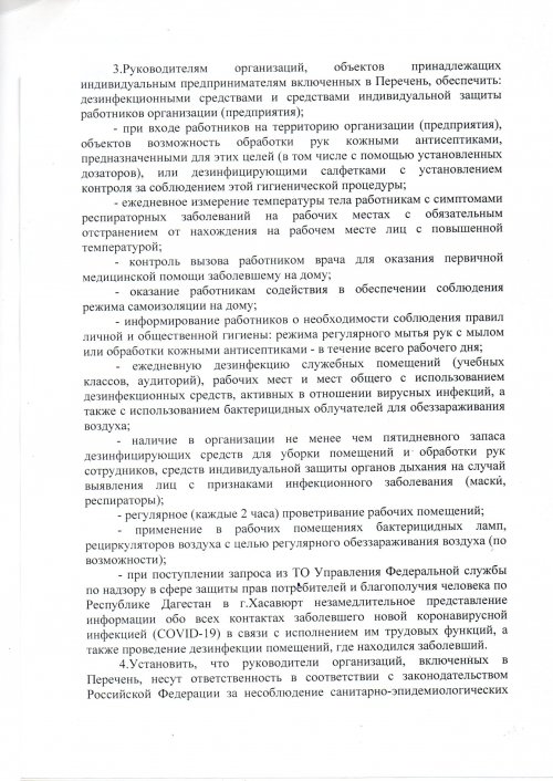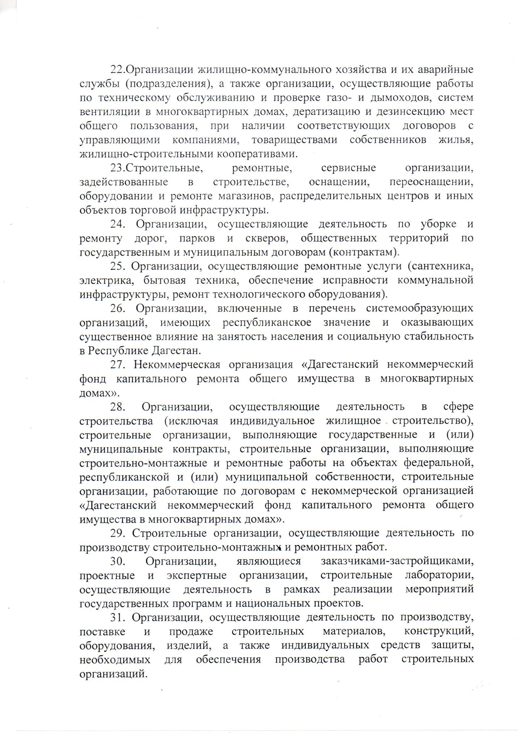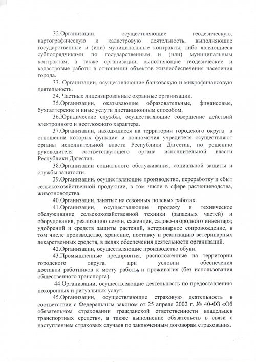 42. Промышленные предприятия, расположенные на территории муниципальных образований Республики Дагестан, при условии обеспечения доставки работников к месту работы и проживания (без использования общественного транспорта).