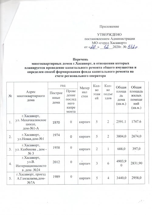 Постановление №312п от 26 декабря 2020 г. О формировании фонда капитального ремонта на счете регионального оператора