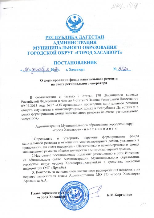 Постановление о формировании фонда капитального ремонта на счете регион оператора