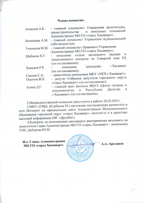 Постановление О создании межведомственной комиссии по обследованию земельных участков и объектов капитального строительства на территории Муниципального образования «город Хасавюрт»