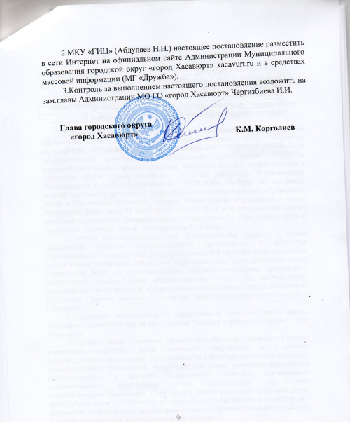 Постановление об утверждении Правил персонифицированного финансирования дополнительного образования детей на территории Муниципального образования городской округ "город Хасавюрт"