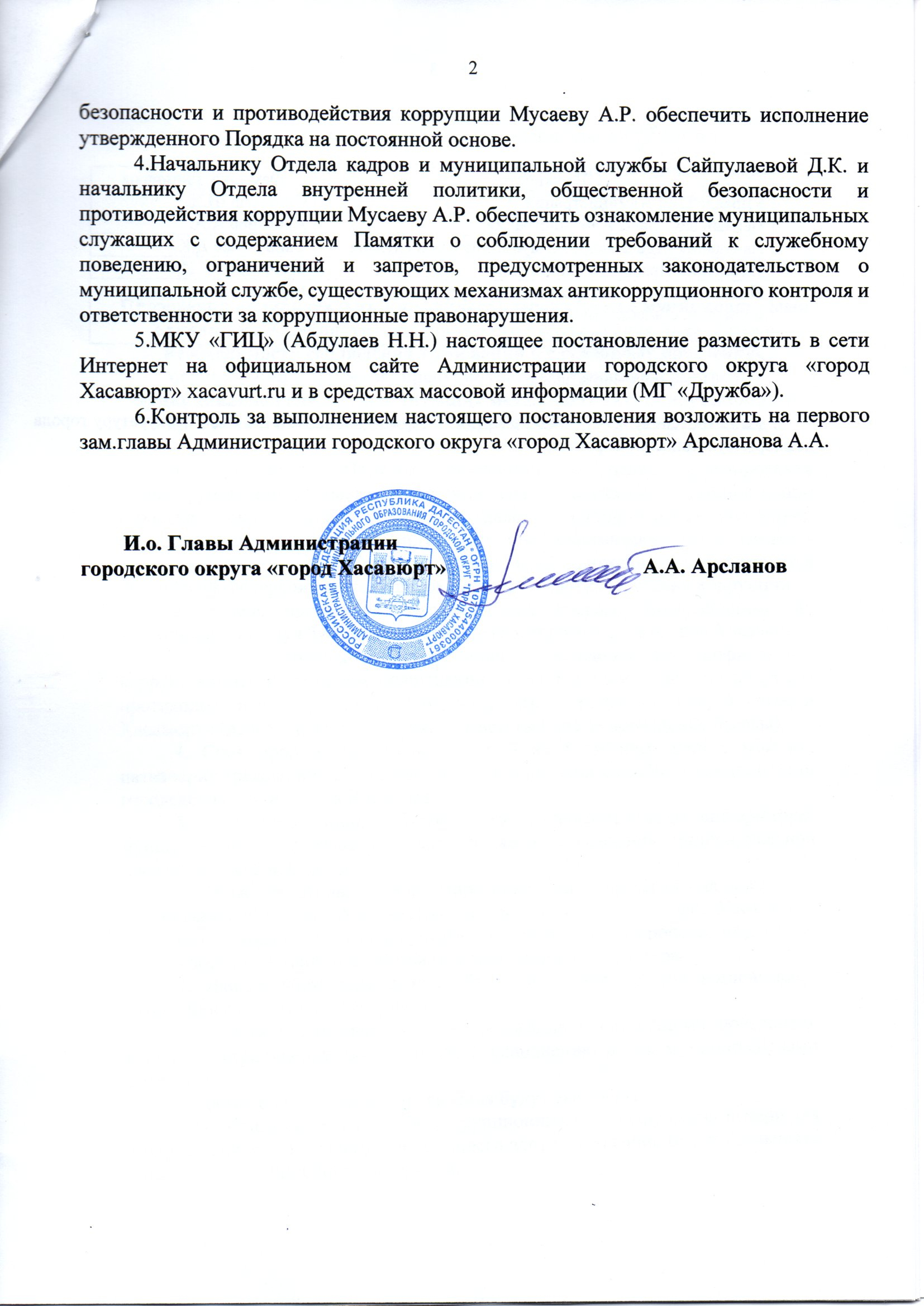 Постановление № 108п от 21 июля 2023 г. Об утверждении Порядка проведения индивидуальных профилактических бесед с муниципальными служащими Администрации городского округа "город Хасавюрт" о необходимости соблюдения требований к служебному поведению, ограничений и запретов, предусмотренные законодательством о муниципальной службе, существующих механизмах антикоррупционного контроля и ответственности за коррупционные правонарушения