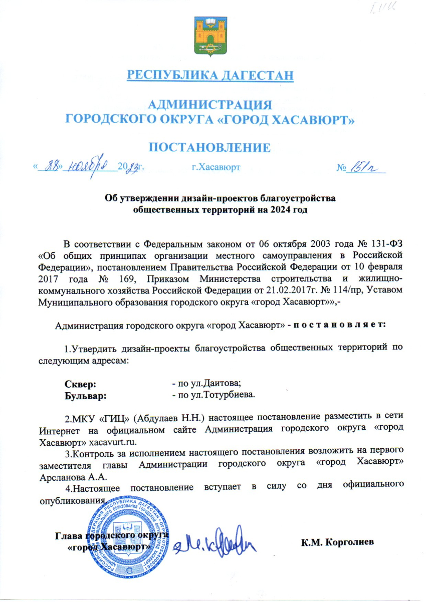 Постановление от 28 ноября 2023 г. № 151п Об утверждении дизайн-проектов благоустройства общественных территорий на 2024 год