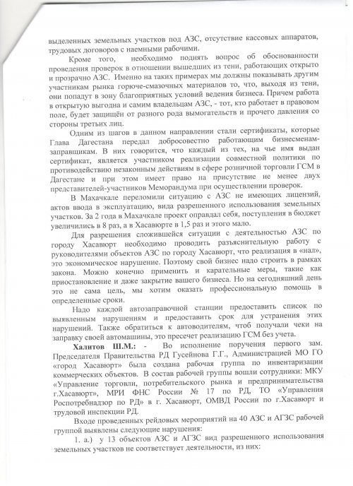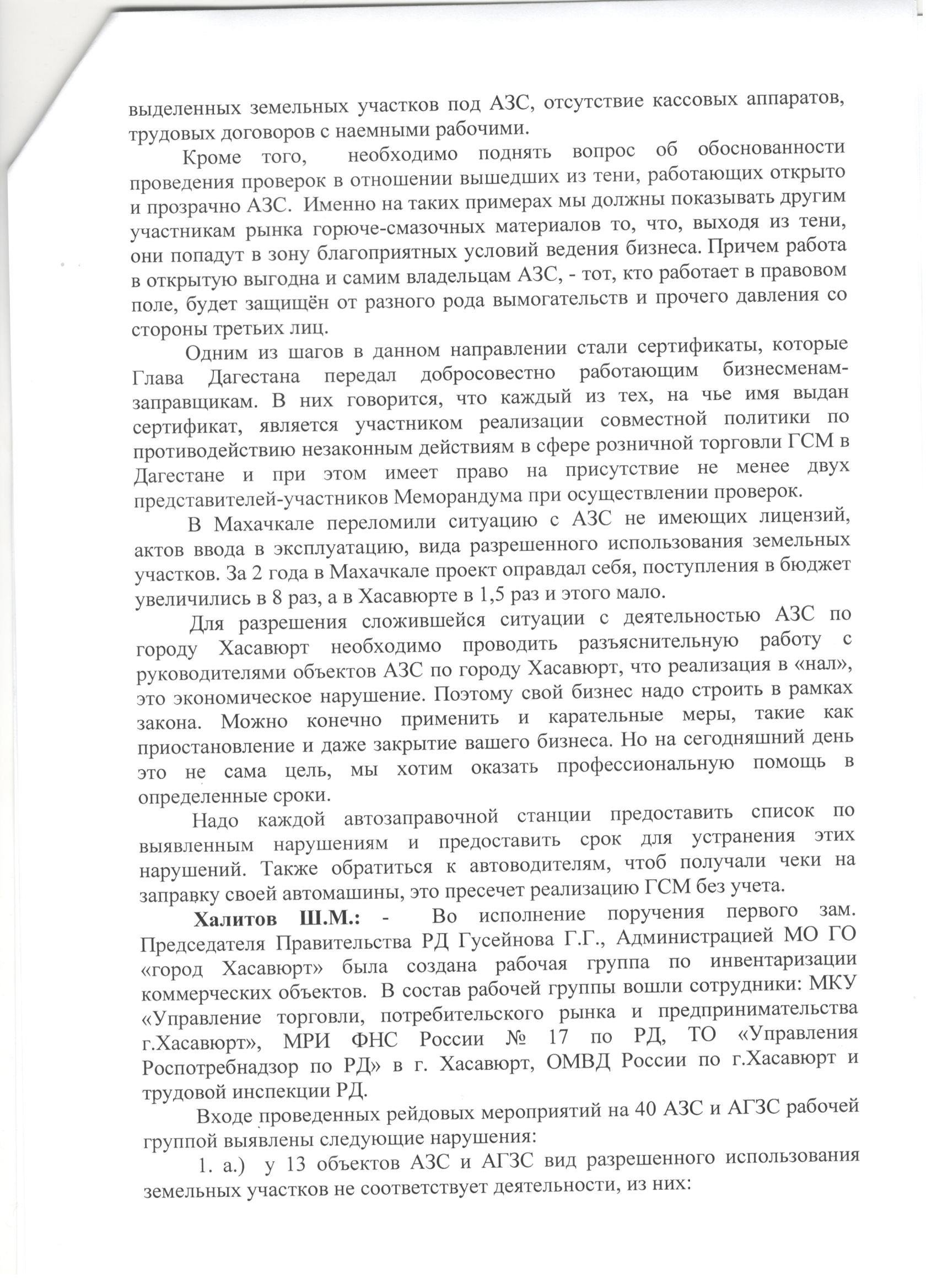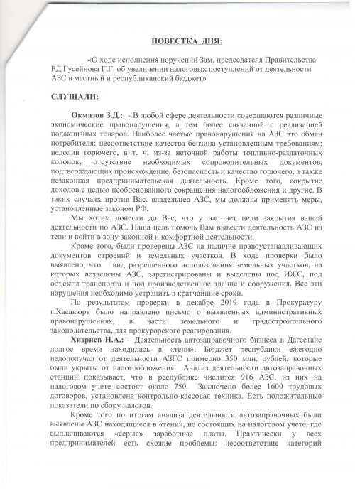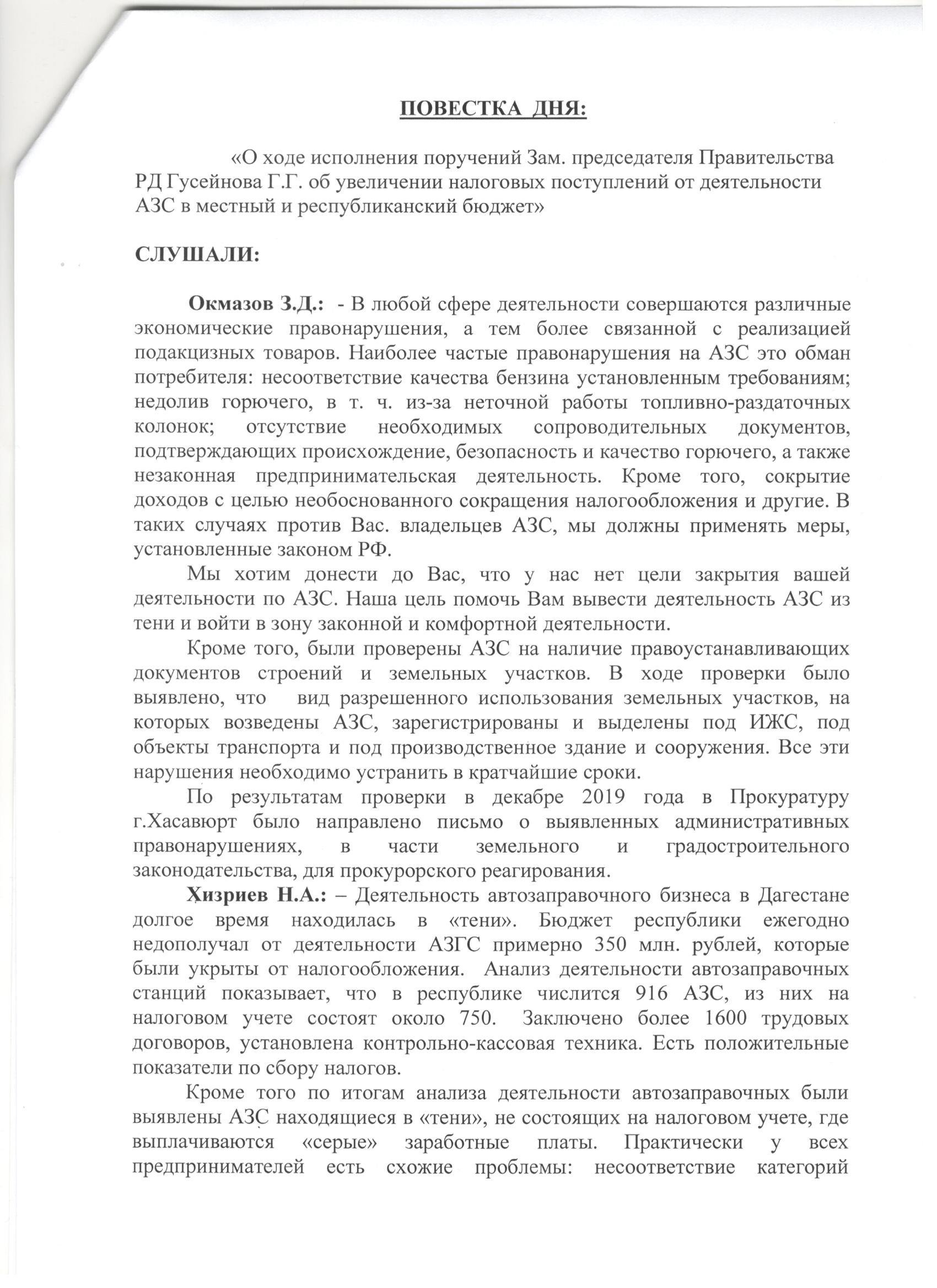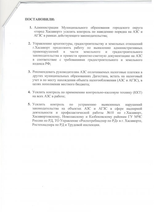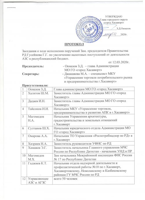 Протокол исполнения поручений Врио Главы РД С.А. Меликова по итогам рабочей поездки в г. Хасавюрт