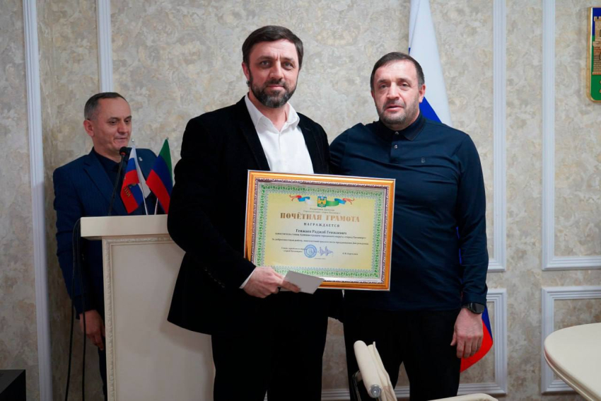 Началась встреча с приятной миссии - награждения заместителя главы города Раджаба Генжаева почетной грамотой за добросовестную работу и многолетний труд.