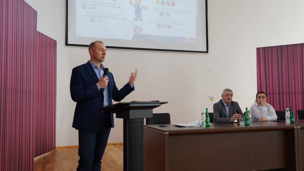 Сергей Касьянов выступил с лекцией для учеников 9-11 классов о сфере ЖКХ. Он рассказал об истории ее развития, составе жилищно-коммунального хозяйства, жилищно-коммунальных услугах и профессиях в этой области.