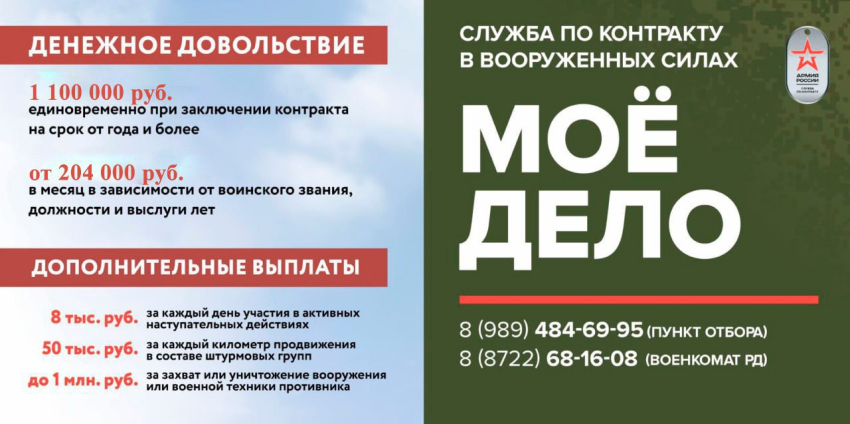 Для получения дополнительной информации и обращения по всем вопросам, можно обратиться по указанным телефонам или в Военный комиссариат по г. Хасавюрт. Адрес: ул. Гамидова, д.13, каб. №9, телефон: 8 (87231) 5-17-14.