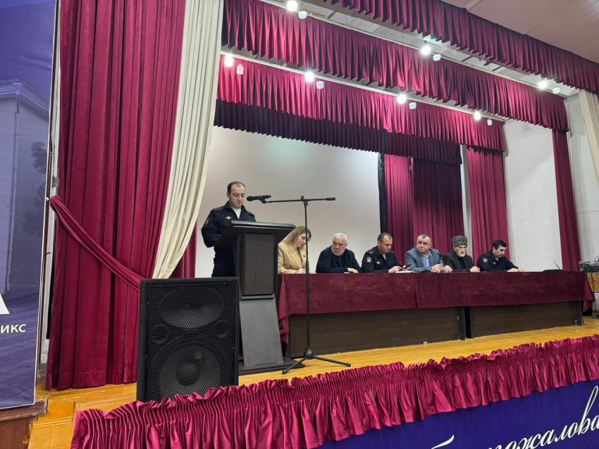 Встреча началась с подведения итогов 2024 года. С докладом о проделанной работе и краткой информацией об обслуживаемой территории выступил участковый уполномоченный полиции ОМВД России по г. Хасавюрту, старший лейтенант Ислам Магомедов.