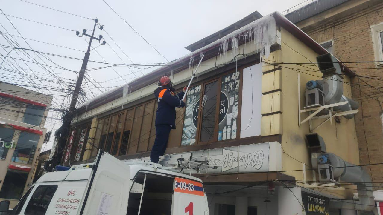 В связи с потеплением погоды, после устоявшихся холодов с обильным снегопадом, на крышах зданий образовались обледенения и сосульки. По поручению Главы Хасавюрта Корголи Корголиева специалисты Управления по делам гражданской обороны ЧС и ПБ провели мероприятия по устранению наледи на зданиях городских учреждений, а также в местах с интенсивной проходимостью пешеходных маршрутов.