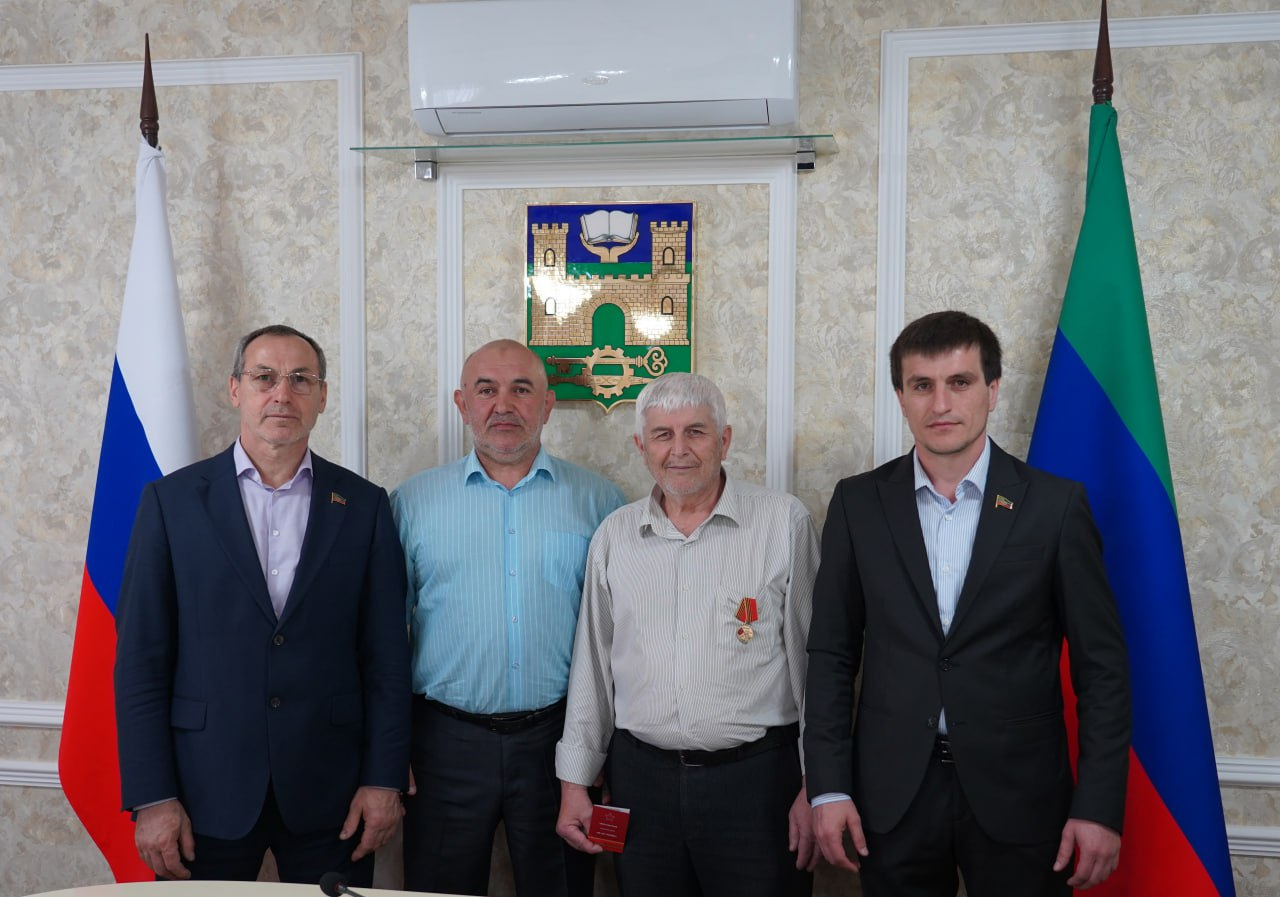 Заместитель главы Администрации Хасавюрта Хайбулла Умаров вместе с депутатами городского Собрания передали Нажмудину Тажудинову медаль за значительный вклад в поисках без вести пропавших солдат и офицеров Рабоче-крестьянской Красной армии (РККА) и увековечение памяти защитников Отечества.