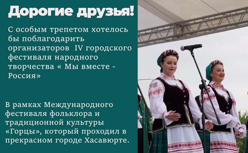 После окончания IV городского фестиваля народного творчества «Мы вместе - Россия», прошедшего в Хасавюрте, его участники - творческие коллективы и мастера из Республики Беларусь, Узбекистана, Башкортостана, Ставропольского края поделились своими тёплыми отзывами о мероприятии, городе и гостеприимстве жителей.