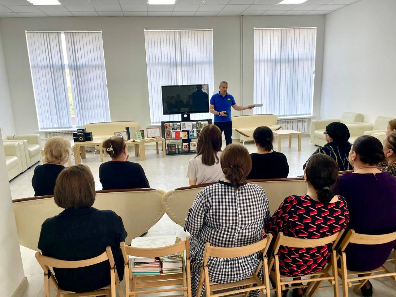 Специалисты МКУ «Управление по обеспечению мероприятий ГО, ЧС и ПБ»провели беседу в Хасавюртовской городской библиотеке имени Р.Гамзатова в которой приняли участие руководство и коллектив библиотеки. Темой обсуждения стали «Правила поведения при ЧС различного характера и при угрозе атаки БПЛА»